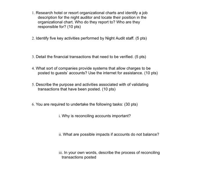 The job description and duties that are. The Night Auditor will responsible to conduct all nightly audit-related duties while providing guest service at the hotels front desk. You must also ensure the telephone reception and the sorting of mail as well as the accounting of the.